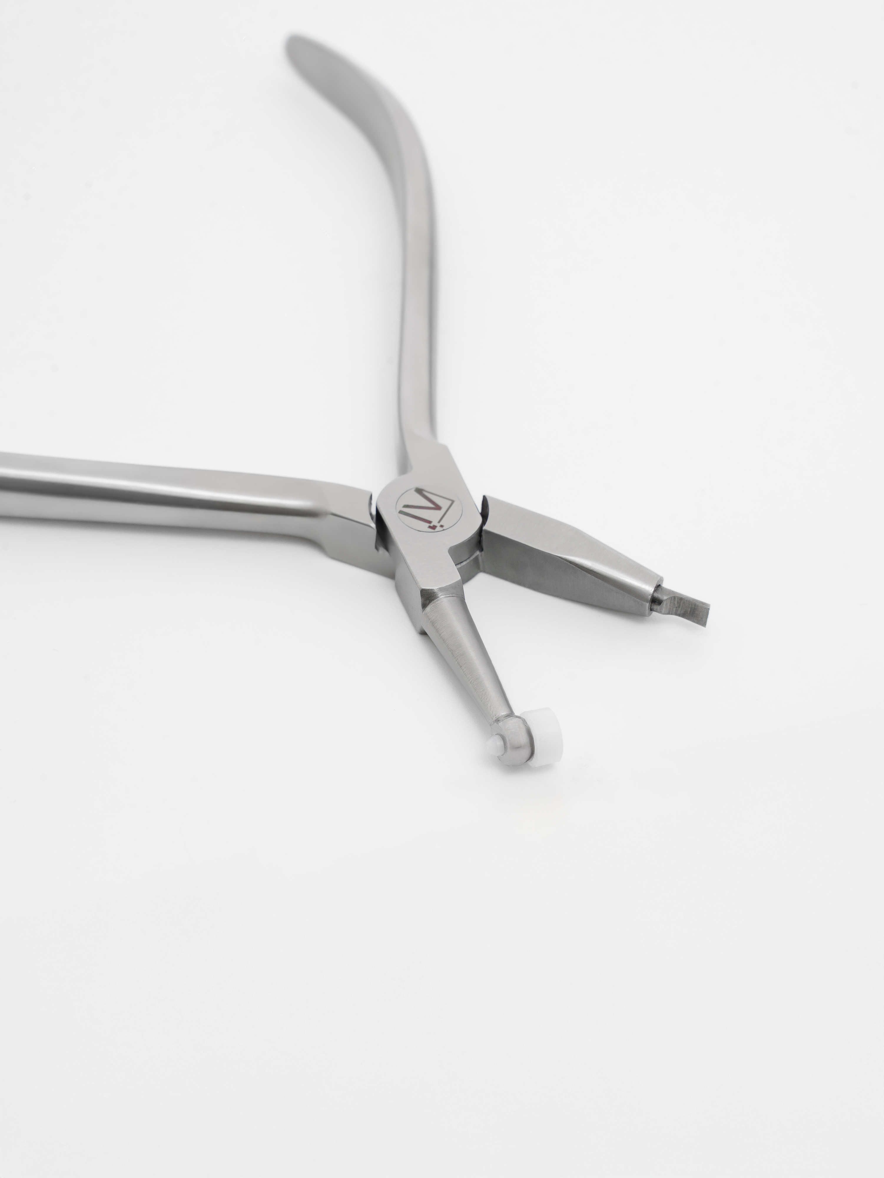 Сконструирован с реверсивным сменным лезвием, которое используется для удаления основной массы композитного материала после демонтажа брекетов и навесного оборудования. Эти плоскогубцы поставляются с уже установленной на рабочем конце прокладкой диаметром 3/16 дюйма (4,76 мм) и дополнительной прокладкой диаметром 1/4 дюйма (6,35 мм) для пробных целей. При необходимости можно заказать запасные прокладки.